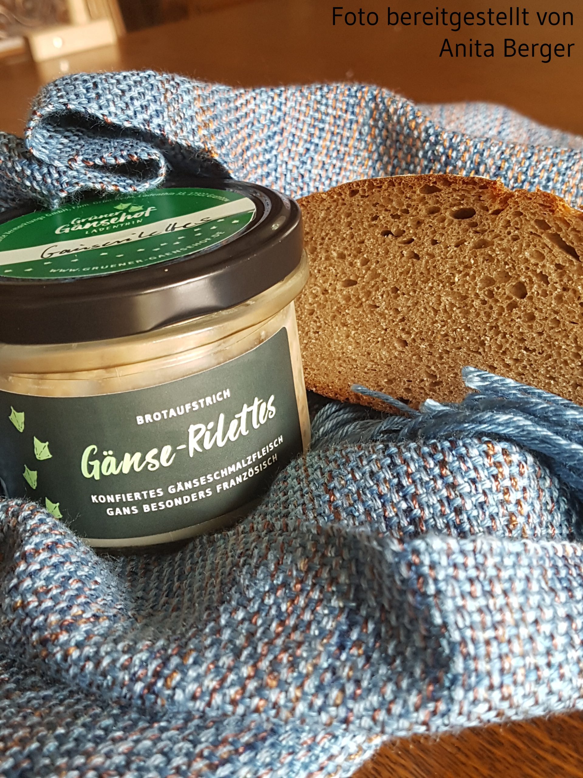 Rillettes ist in Frankreich eine beliebte Delikatesse. Dabei handelt es sich um konfiertes d.h. im eigenen Fett gegartes und somit haltbar gemachtes Gänsefleisch, welches im Gegensatz zur Leberwurst aus den edelsten Teilen der Gans – Brust und Keule – gefertigt wird.