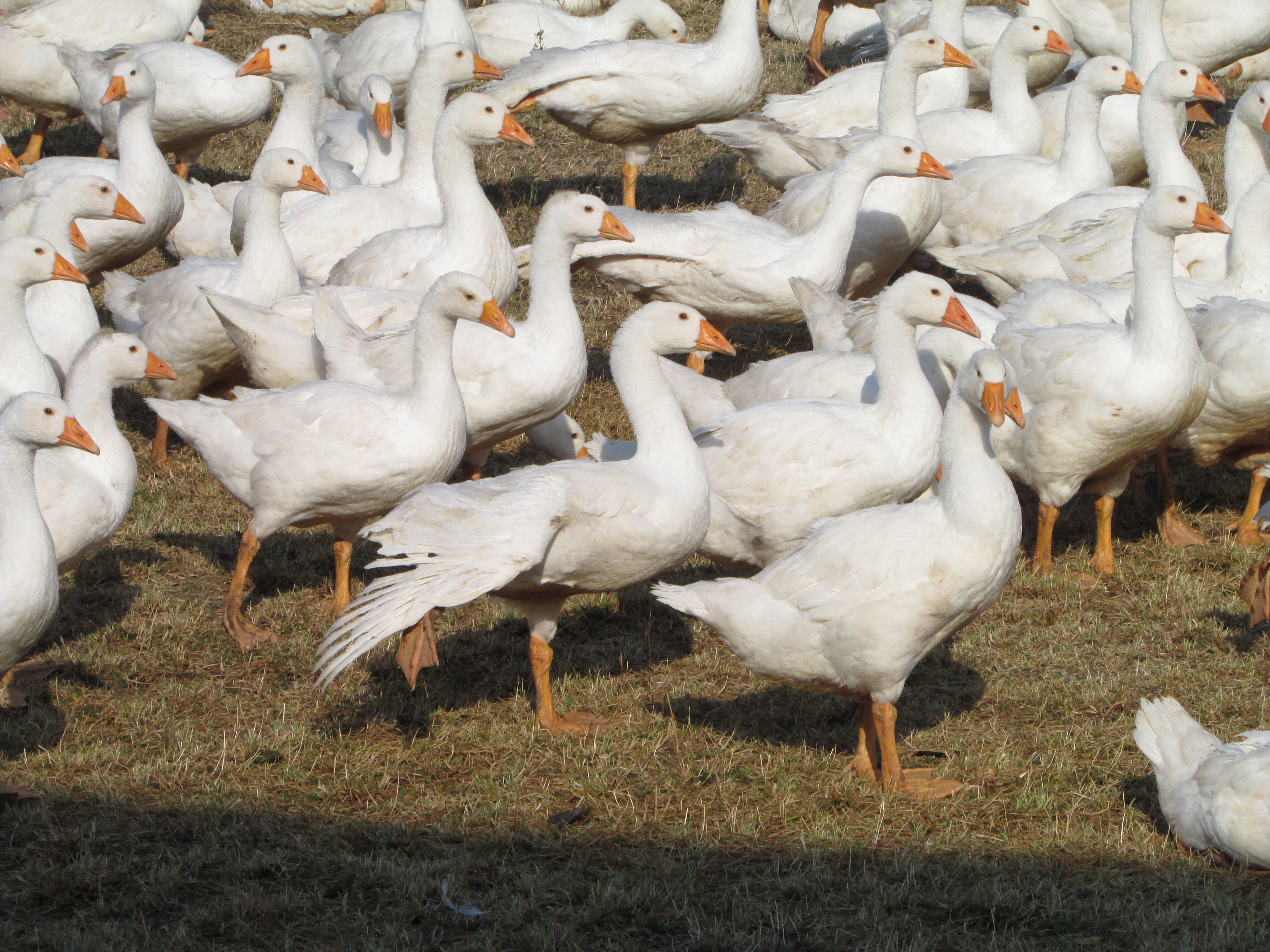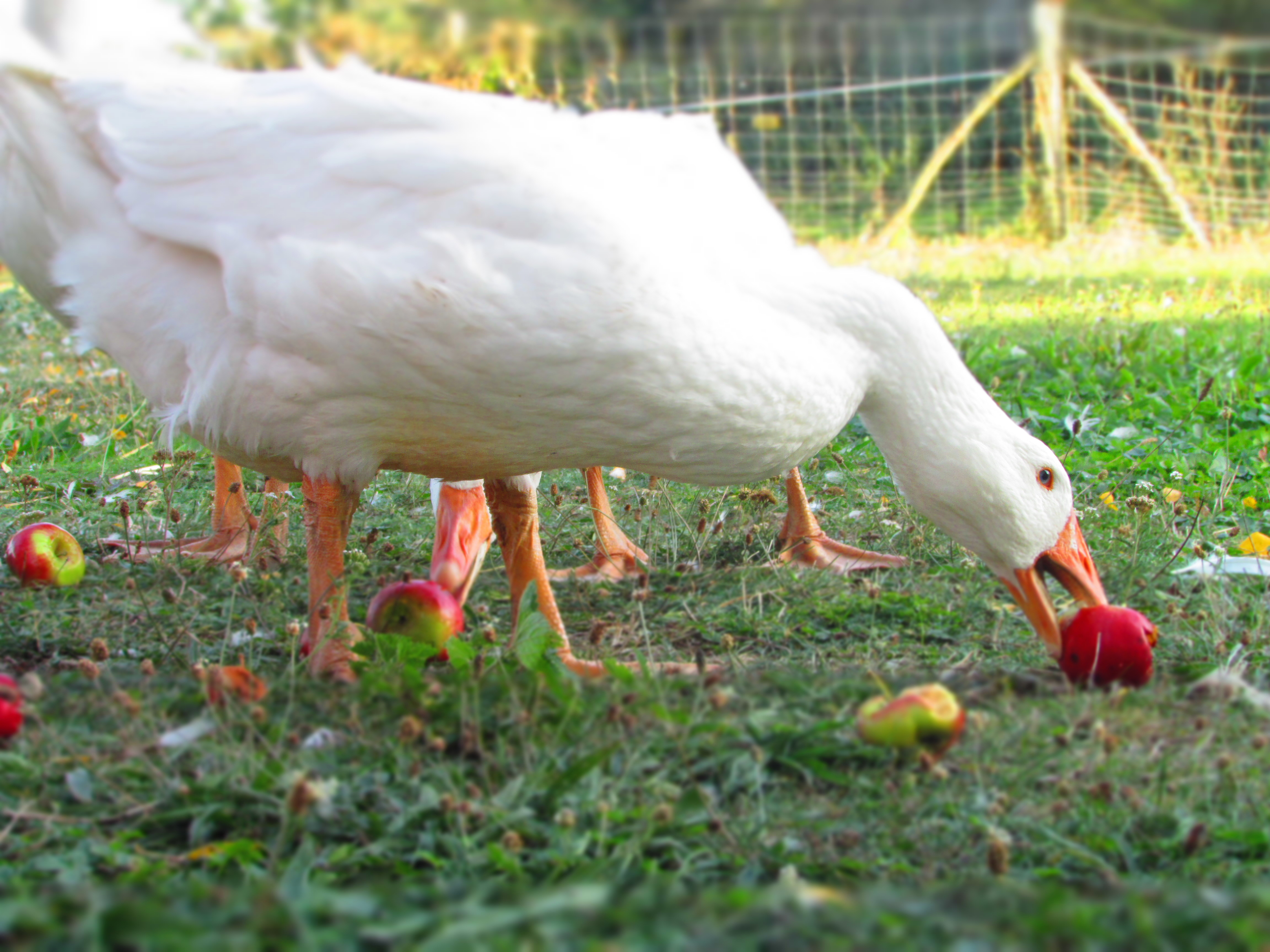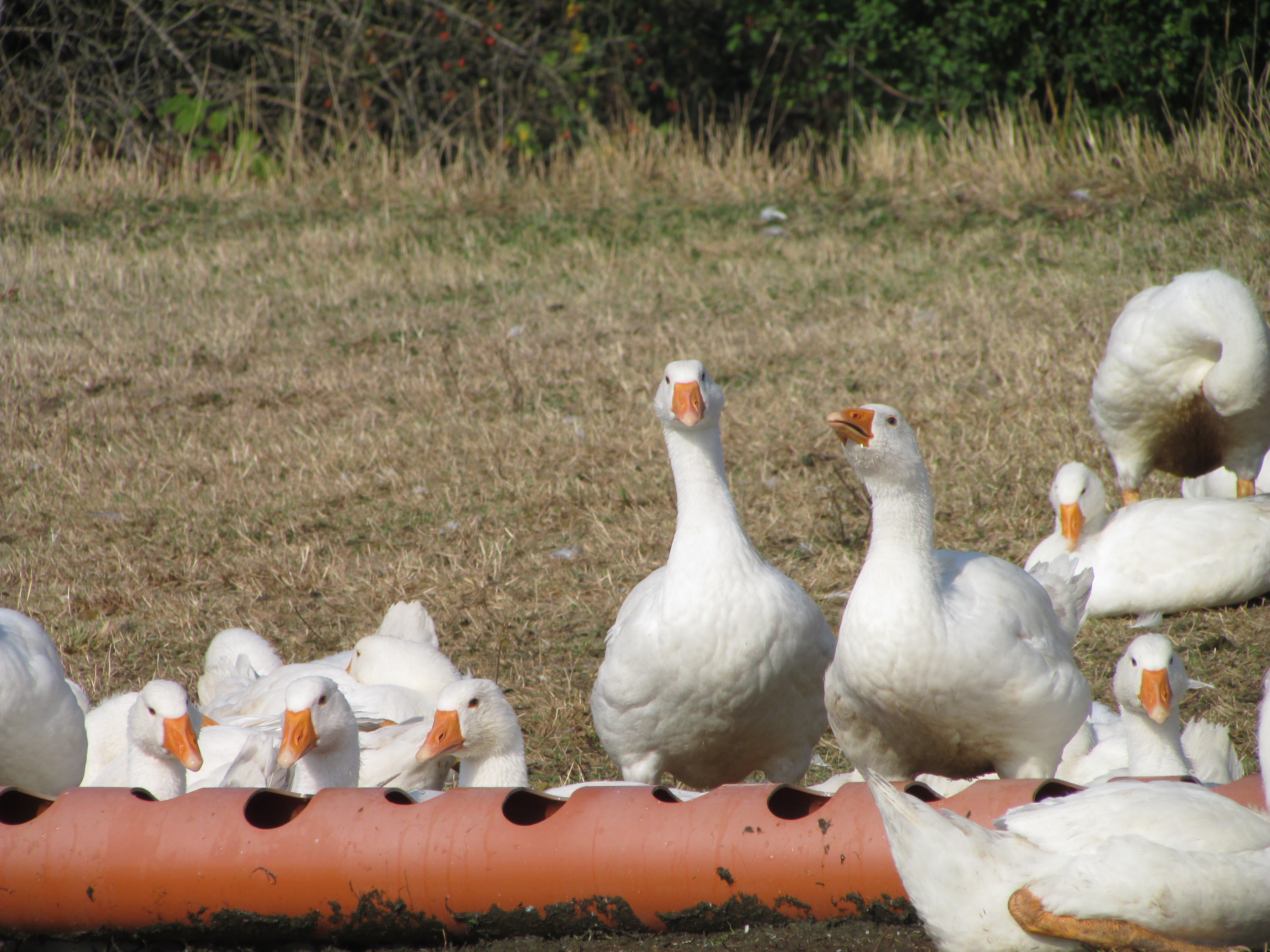 Doch der Sommer war lang, und erneut ausgesprochen heiß und trocken. Kein einfaches Wetter für Gänse, die – Hunden ähnlich – nur durch Hecheln ihre Körpertemperatur regulieren können. Die Schattensuche und Watteraufnahme waren in diesen Wochen das Wichtigste. Auch unsere Weideflächen litten mächtig.