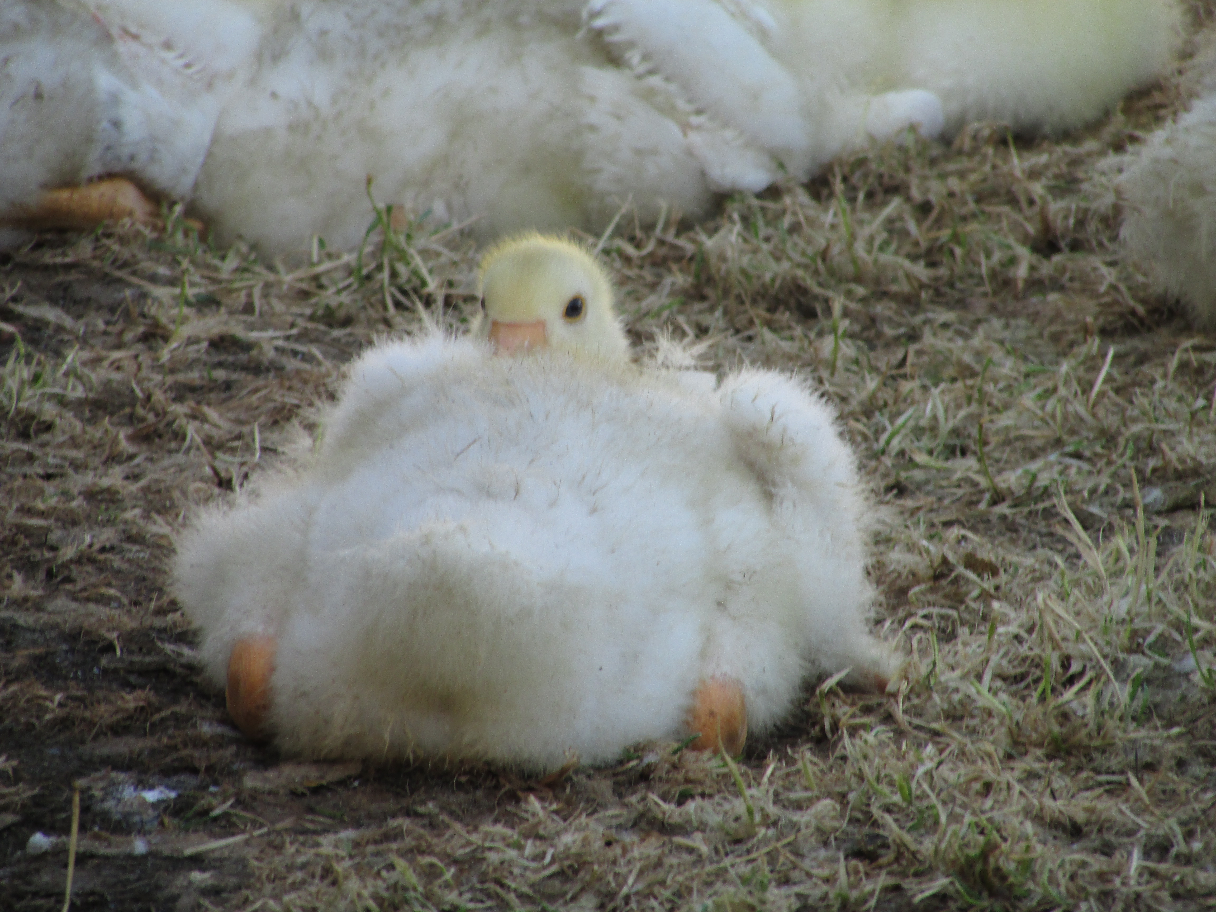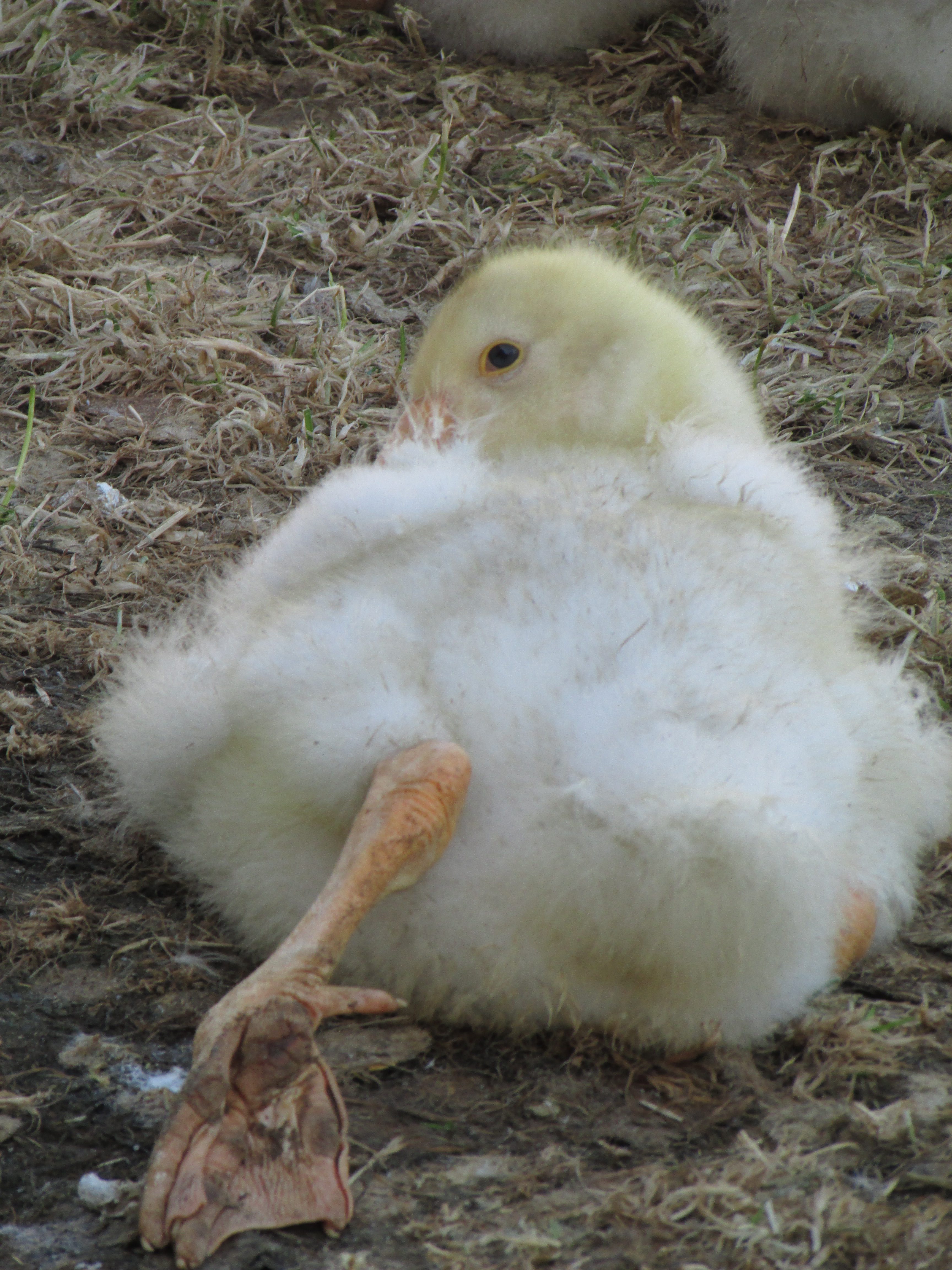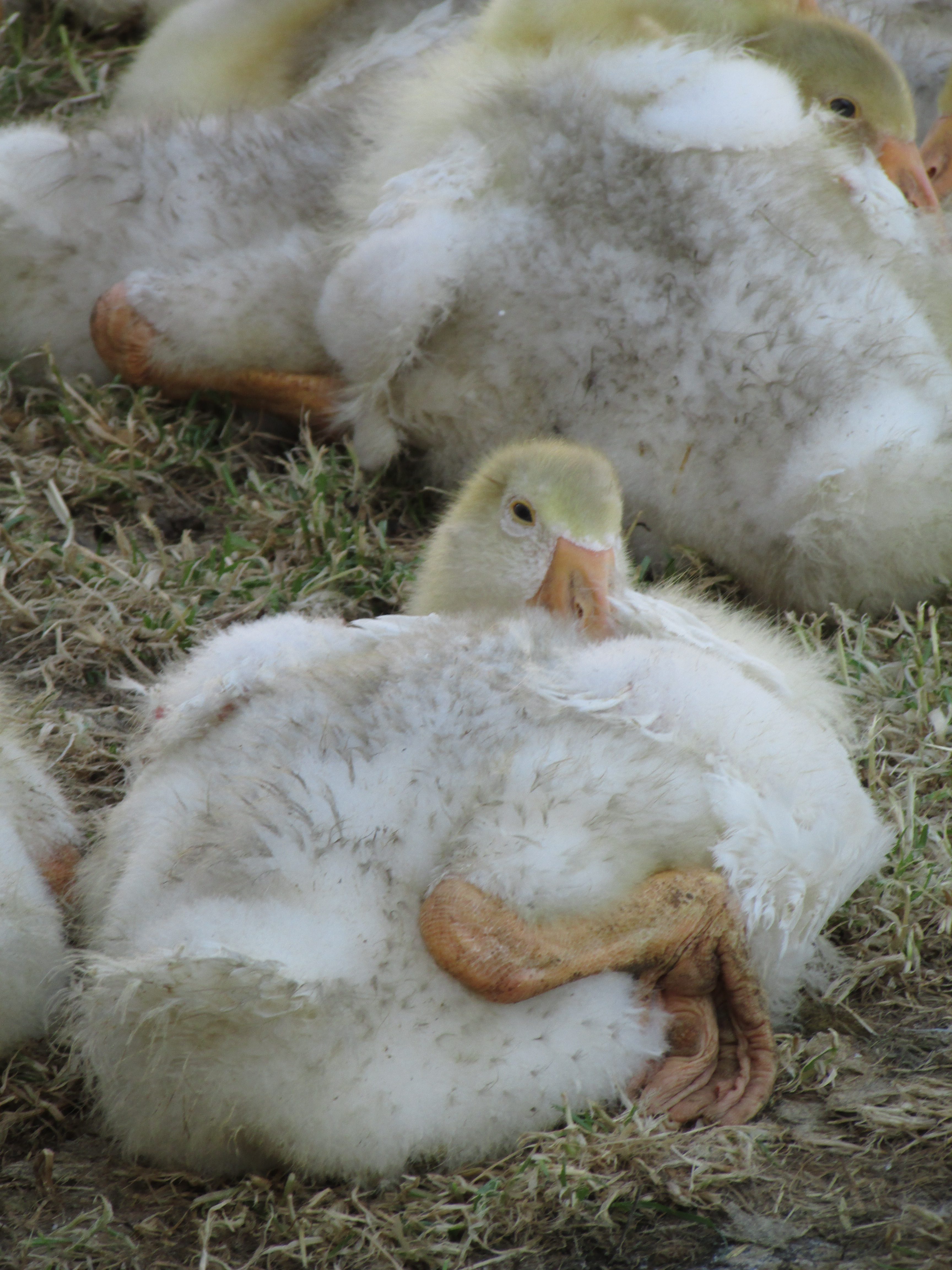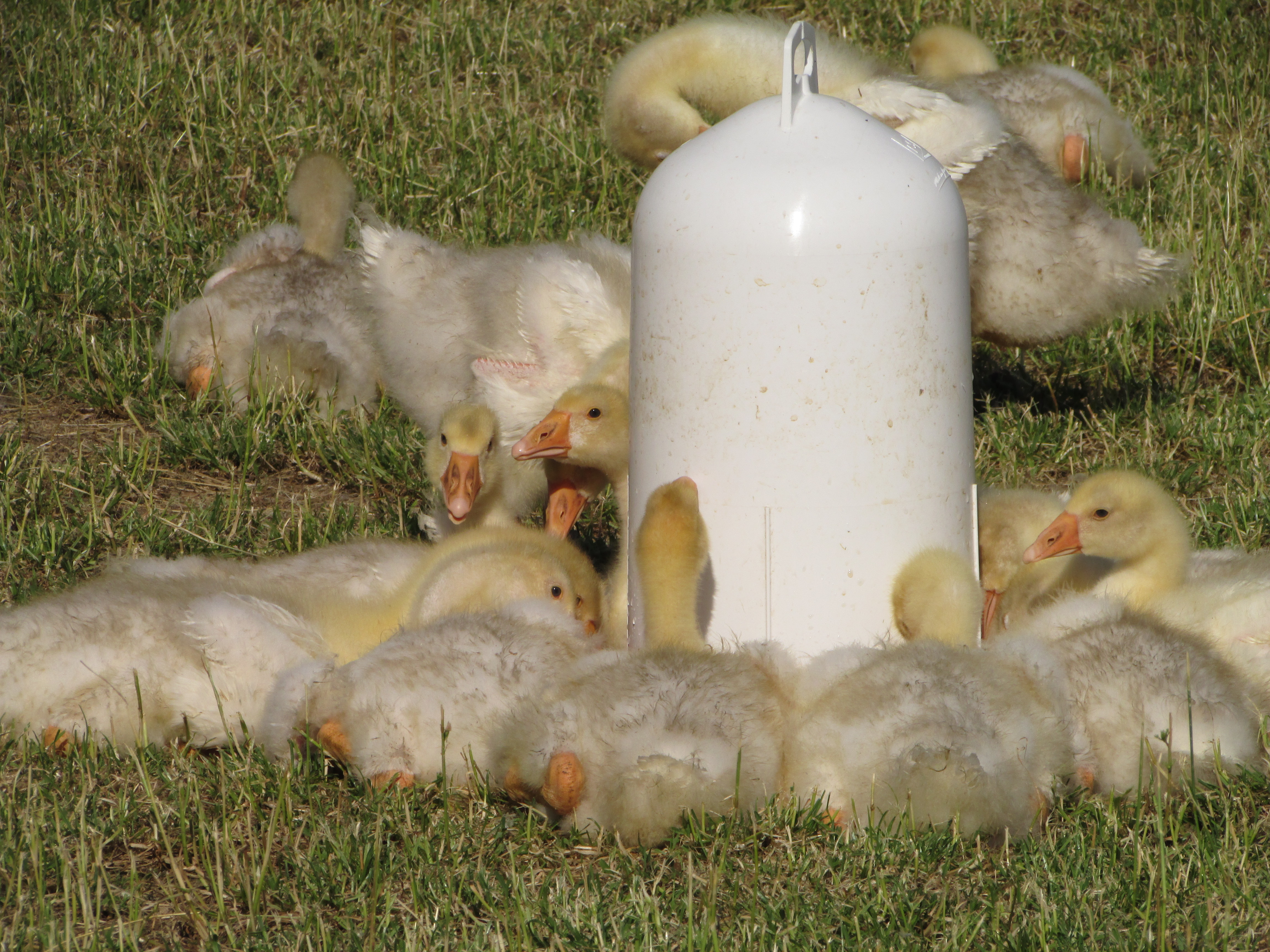 Am 15. Mai zogen die am Vortag frisch geschlüpften Gössel auf unserem Hof ein und verbrachten ihre ersten Tage zusammen gekuschelt unter der wärmenden Infrarotlampe und erkundeten zwei Wochen später bereits ausgiebig den Stall.