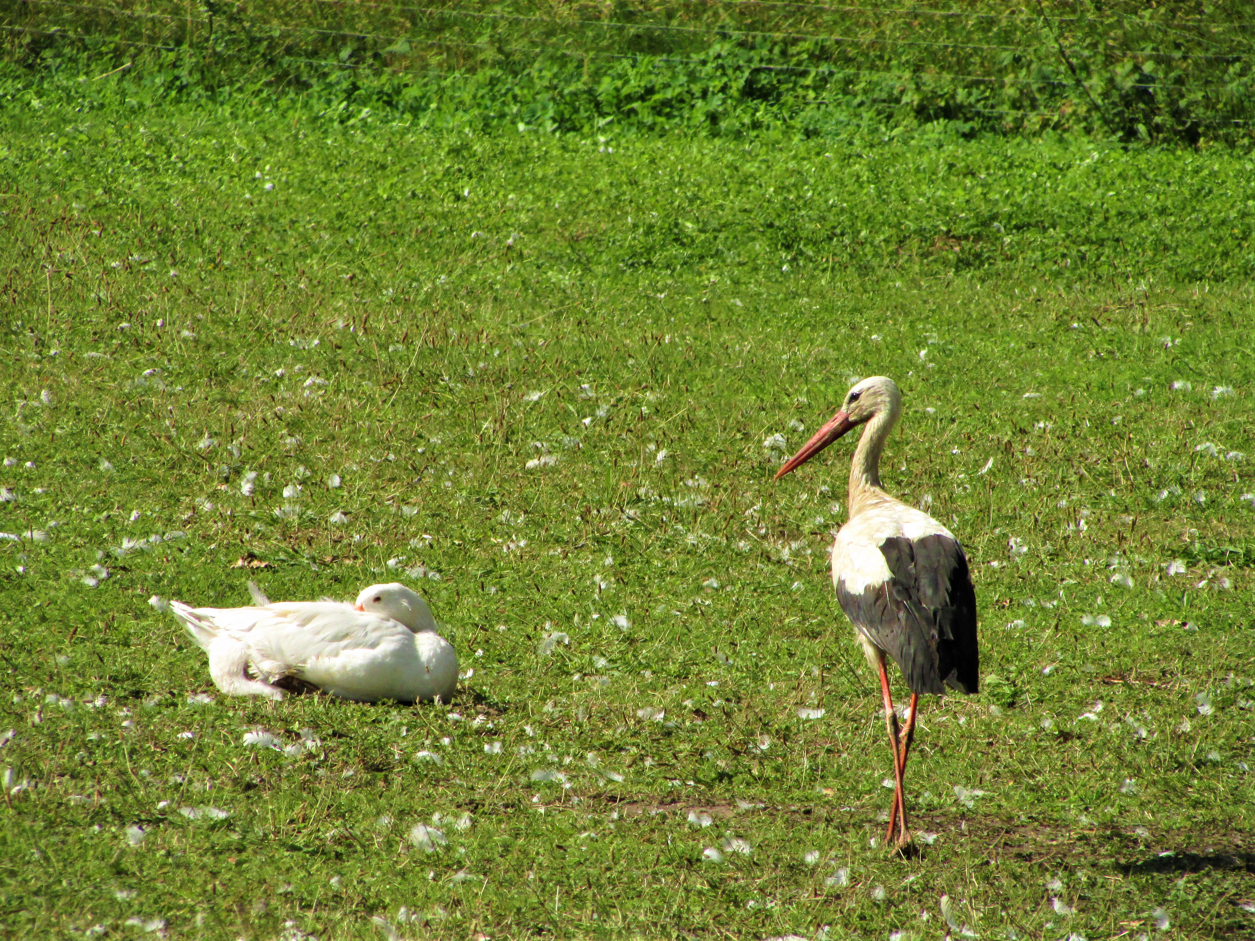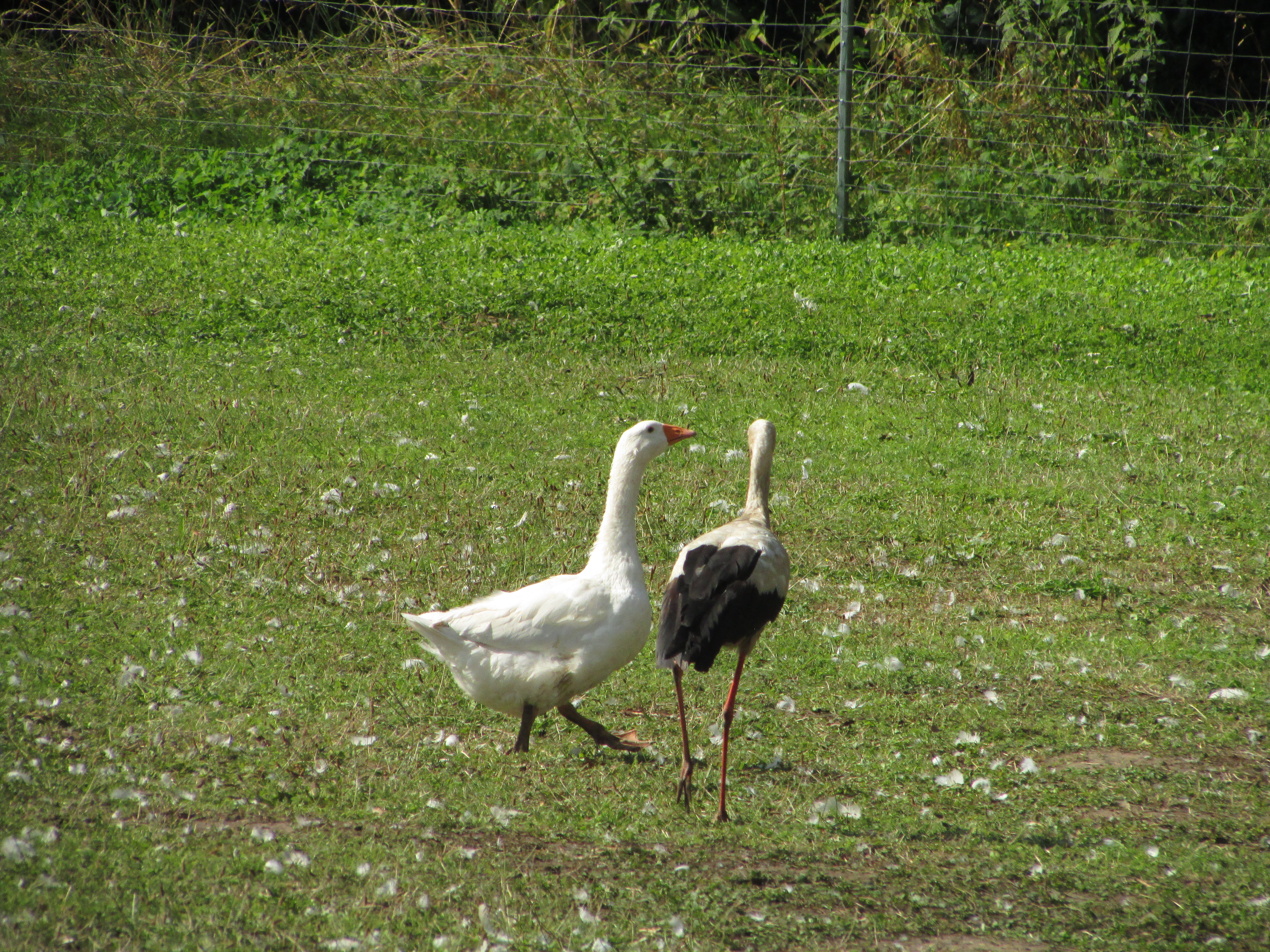 Während der Sommermonate machten die Ladenthiner Storchenkinder des öfteren eine Stipvisite bei den Gänsen. Dabei entstanden amüsante Bilder…