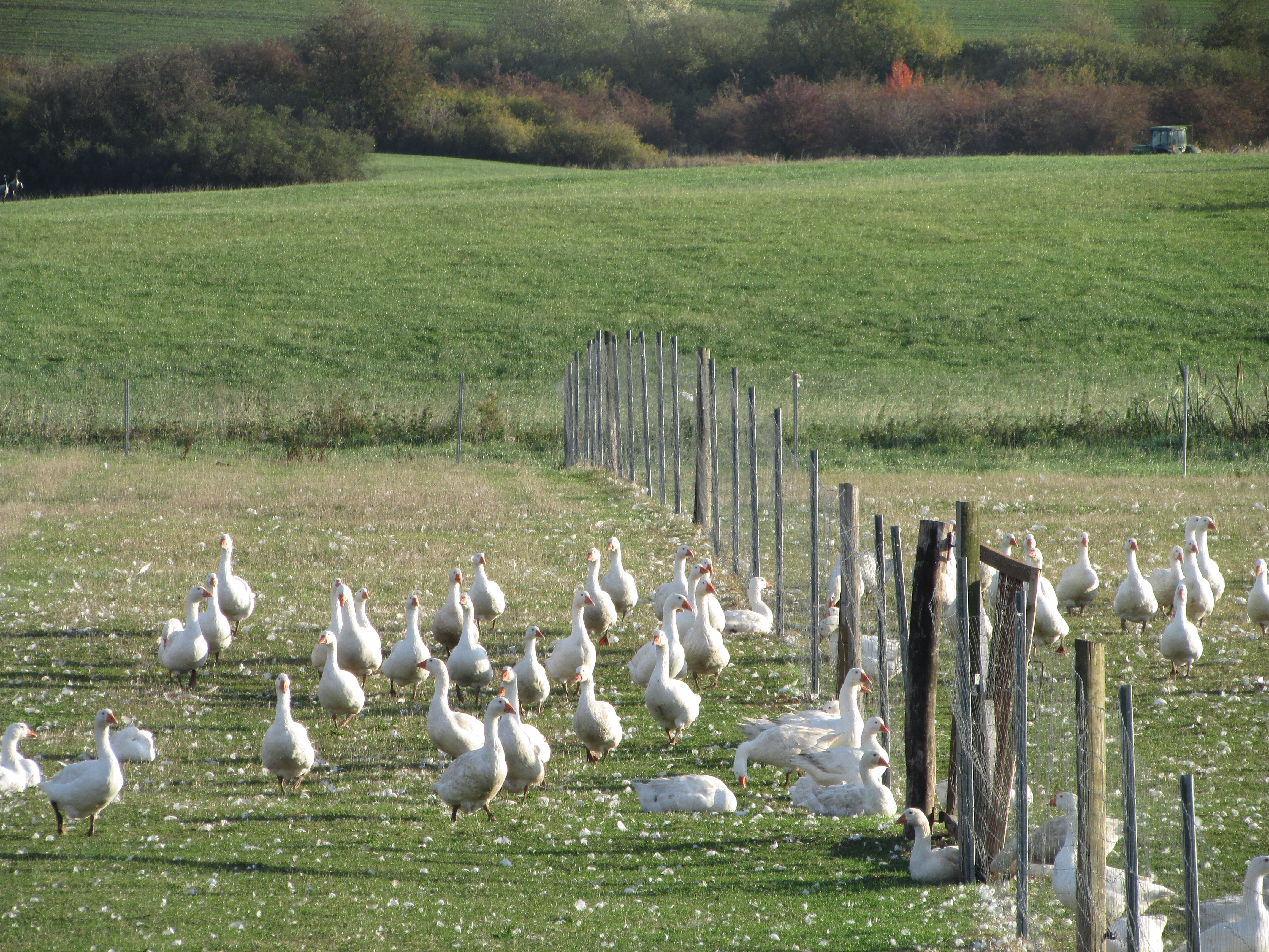 Ab spätestens Ende Juni mussten wir dann auch zusätzliches Getreideschrot verfüttern, denn bei dem kargen Verhältnissen auf der Weide sollte sich keine Gans an trockenen Halmen hungrig knabbern.