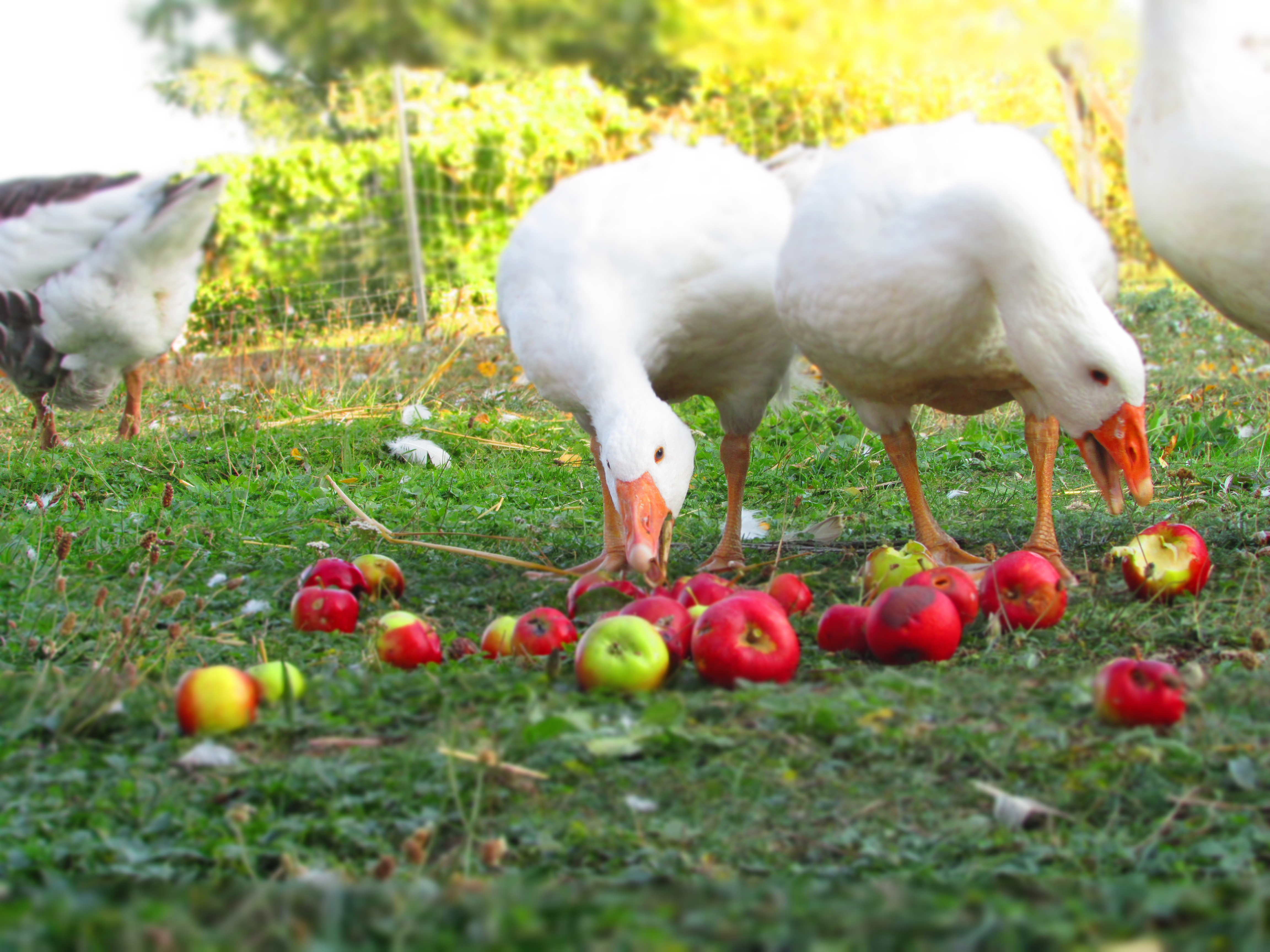Doch der Sommer war lang, und erneut ausgesprochen heiß und trocken. Kein einfaches Wetter für Gänse, die – Hunden ähnlich – nur durch Hecheln ihre Körpertemperatur regulieren können. Die Schattensuche und Watteraufnahme waren in diesen Wochen das Wichtigste. Auch unsere Weideflächen litten mächtig.