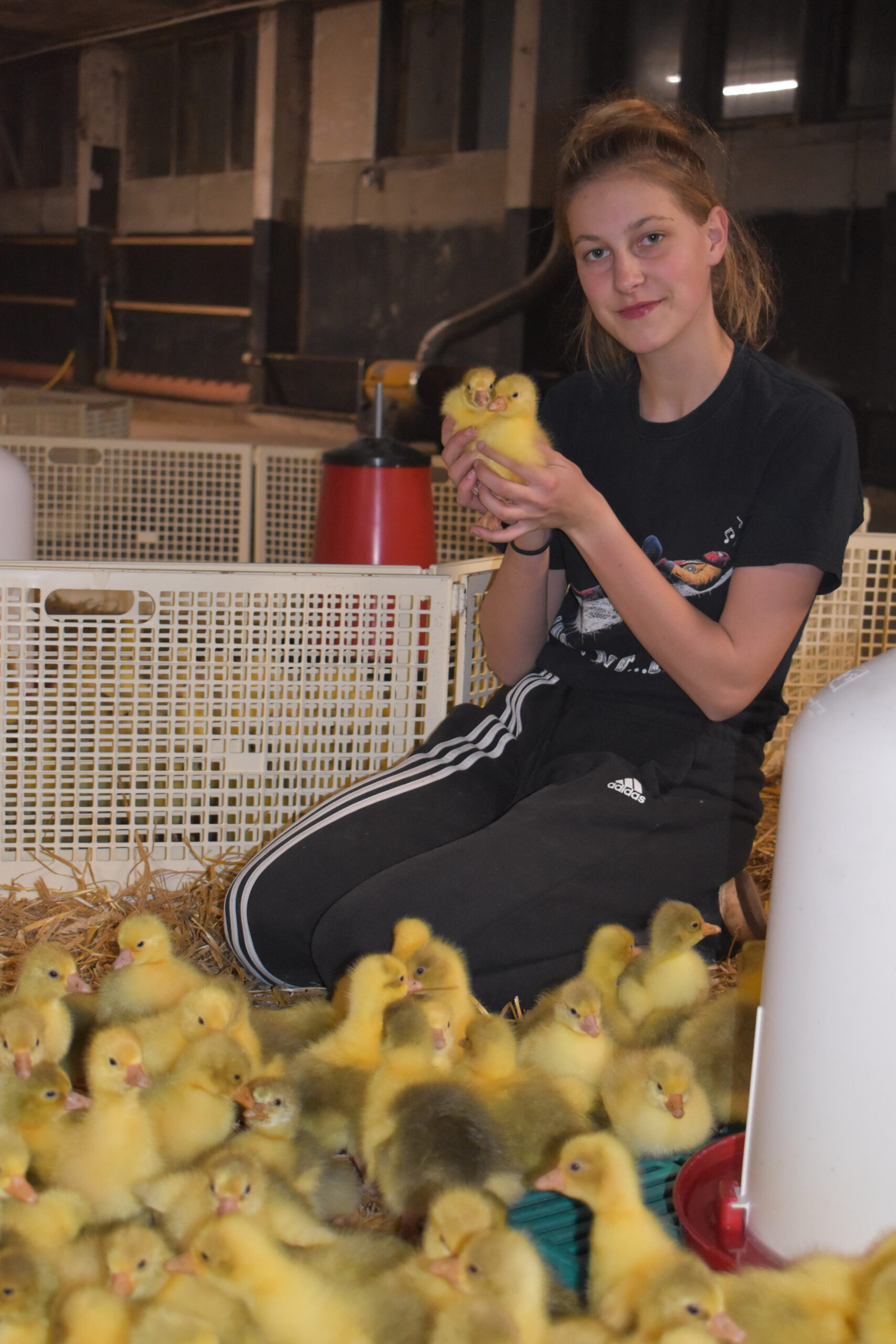 Meine Schwägerin Luisa Reim hilft beim Entladen und kümmert sich in den ersten Stunden um die gerade einen Tag alten gelben Wollknäule.