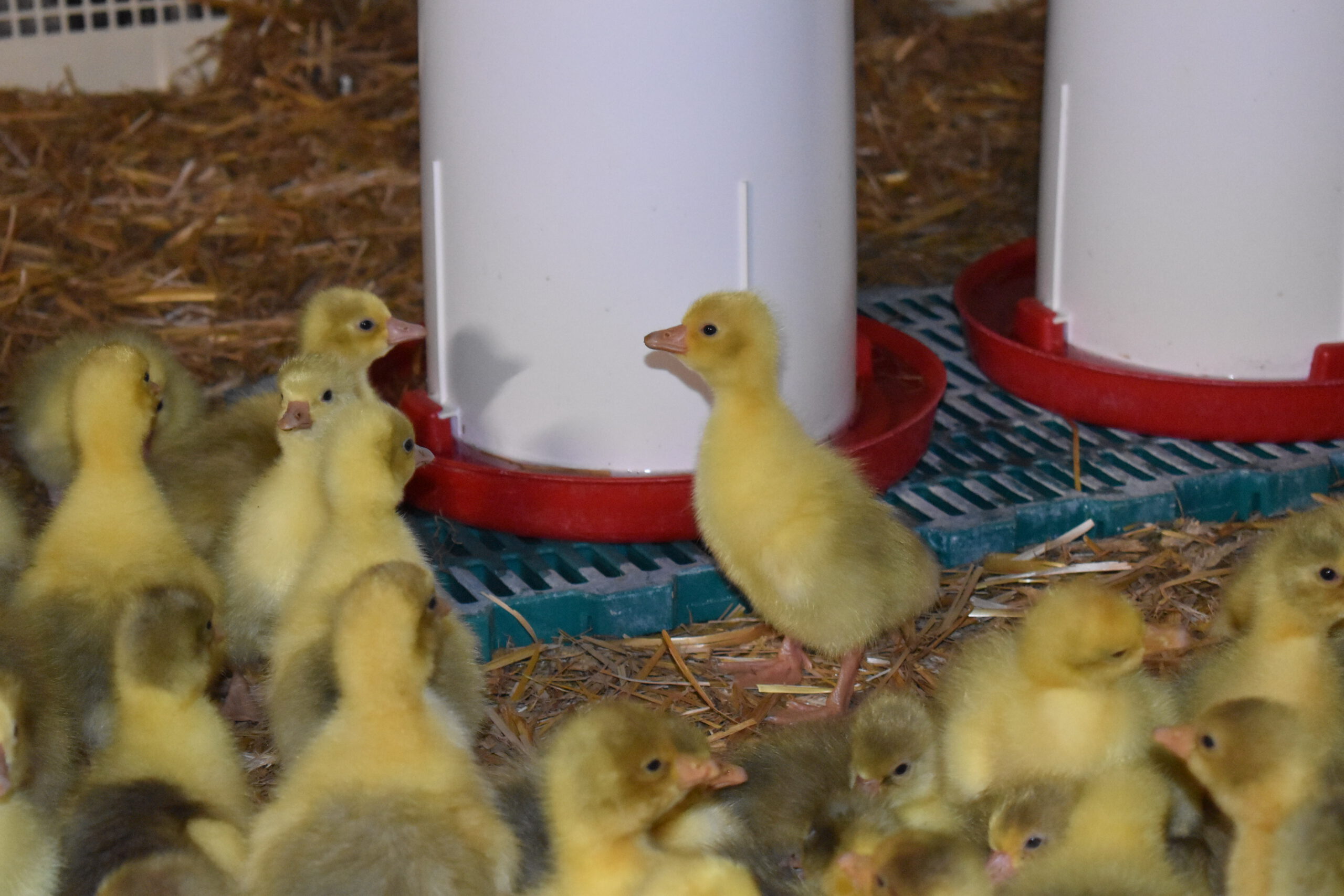 Die Küken werden in den ersten Tagen in sogenannten „Kükenringen“ gehalten, um in kleinen Gruppen wohlige Nester zu simulieren.