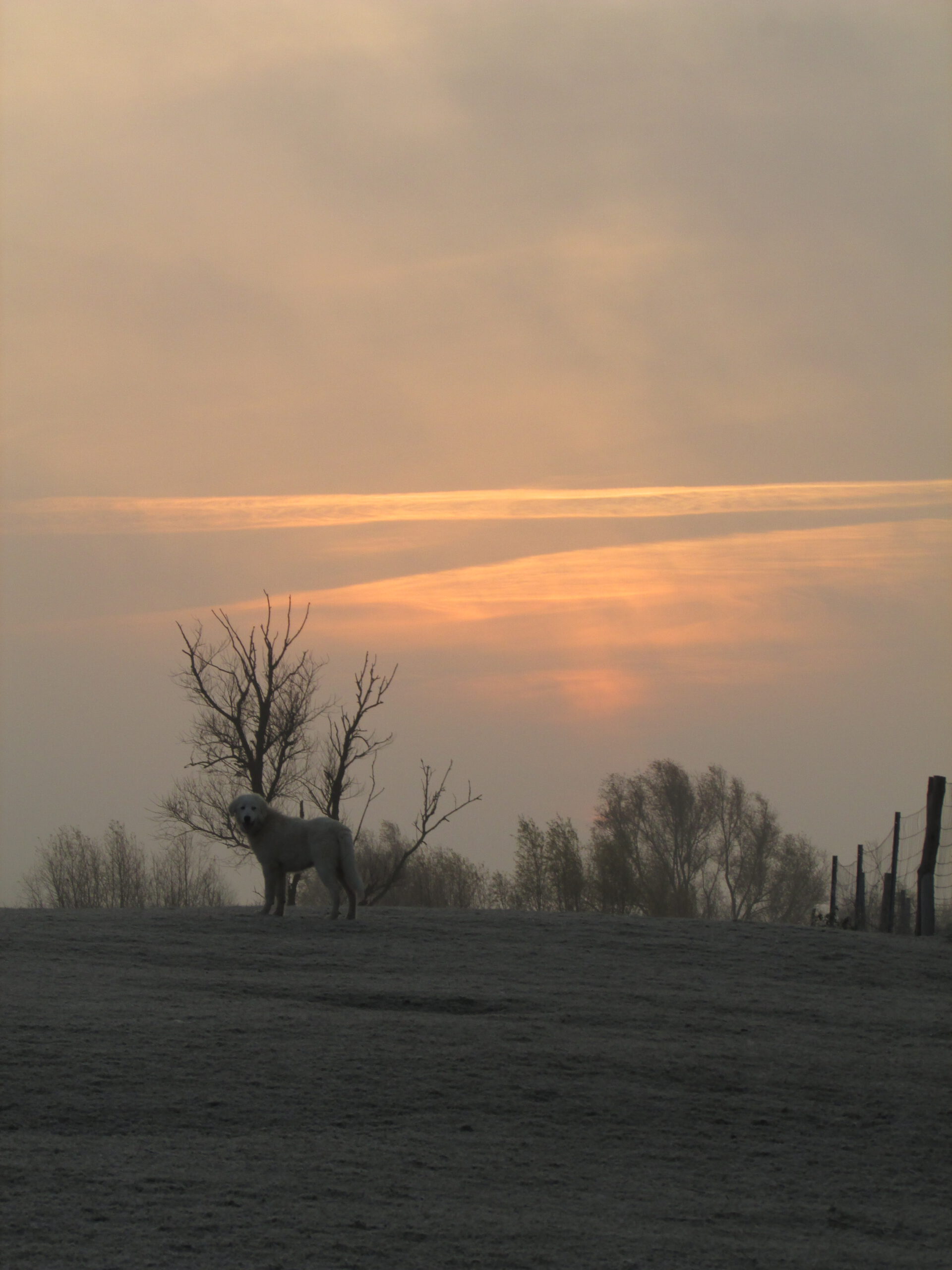 Mit dem Herbst beginnt die Zeit der stimmungsvollen Sonnenaufgänge: Während unsere beiden agilen Herdenschutzhunde Thea und Emma den Auslauf genießen und viel Freude am wilden Toben haben, legen unsere Gänse an Gewicht zu.