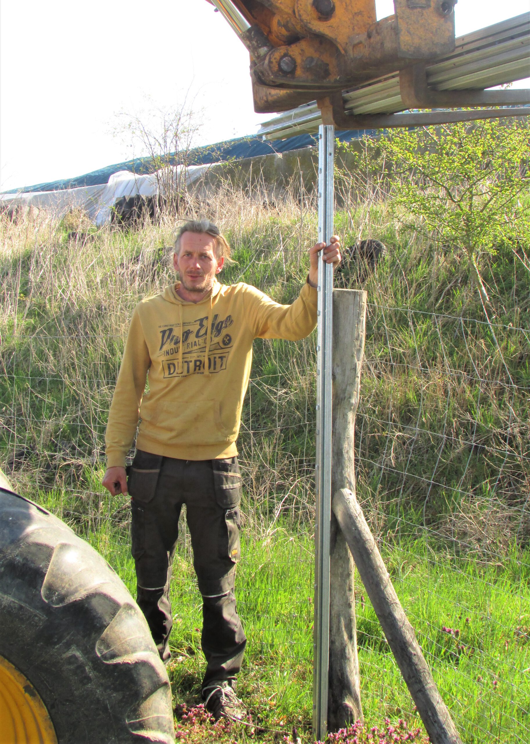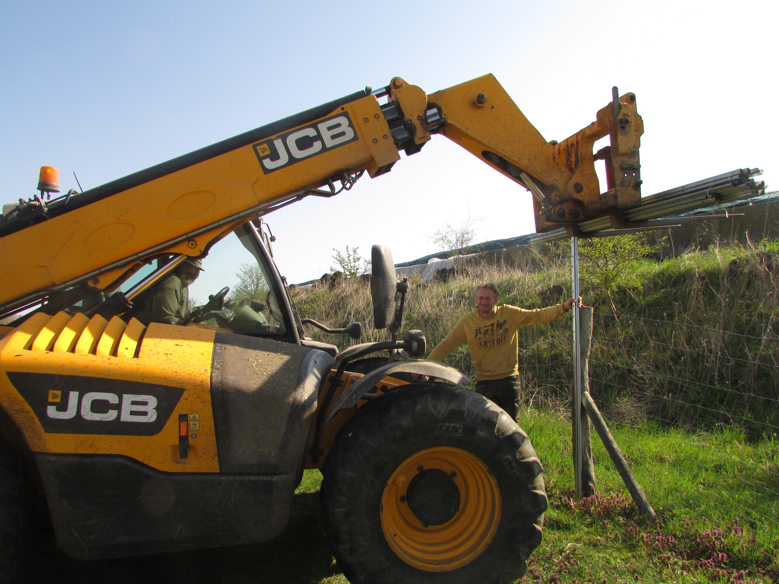 Während die Küken kräftig wachsen und sich zunächst noch im Stall aufhalten, haben unsere beiden Mitarbeiter Lothar Kaiser und Steffen Kittner bei bestem Frühlingswetter den Radlader aus der Garage geholt und 100 Pappeln gepflanzt.