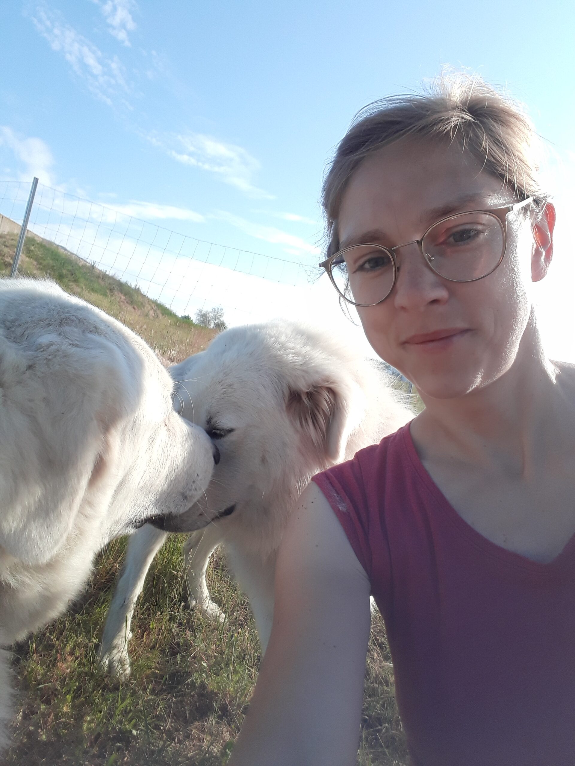 - Astrid mit unseren beiden Herdenschutzhündinnen Thea und Emma